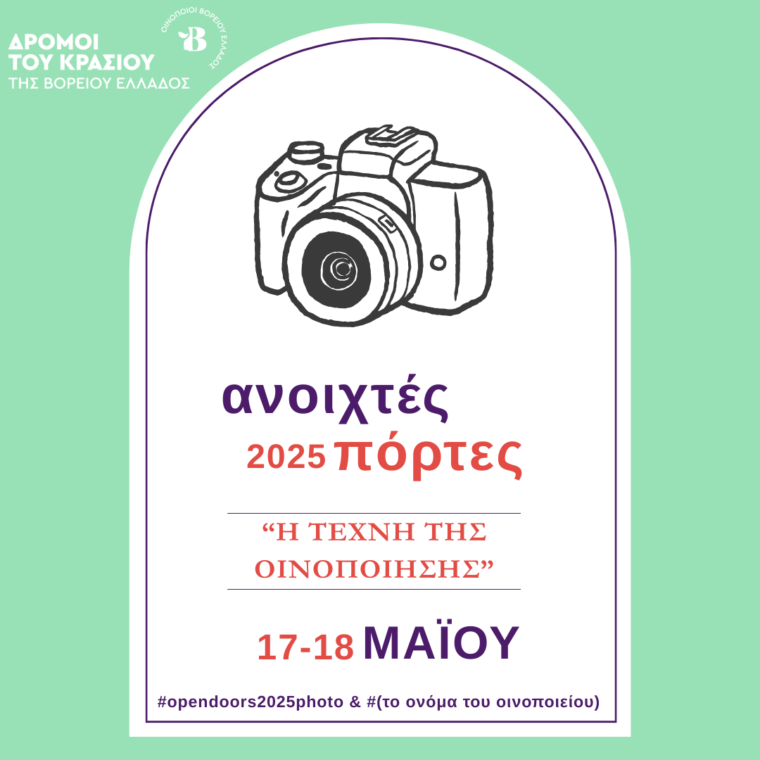 Όπως κάθε χρονιά έτσι και φέτος, σας προσκαλούμε να επισκεφθείτε τα οινοποιεία των Δρόμων του Κρασιού της Βορείου Ελλάδος  το σαββατοκύριακο 17 & 18 Μαΐου και να λάβετε μέρος στον θεματικό διαγωνισμό φωτογραφίας «Η τέχνη της οινοποίησης», ο οποίος διοργανώνεται στο πλαίσιο της ανοιξιάτικης εκδήλωσης ¨Ανοιχτές Πόρτες 2025¨.