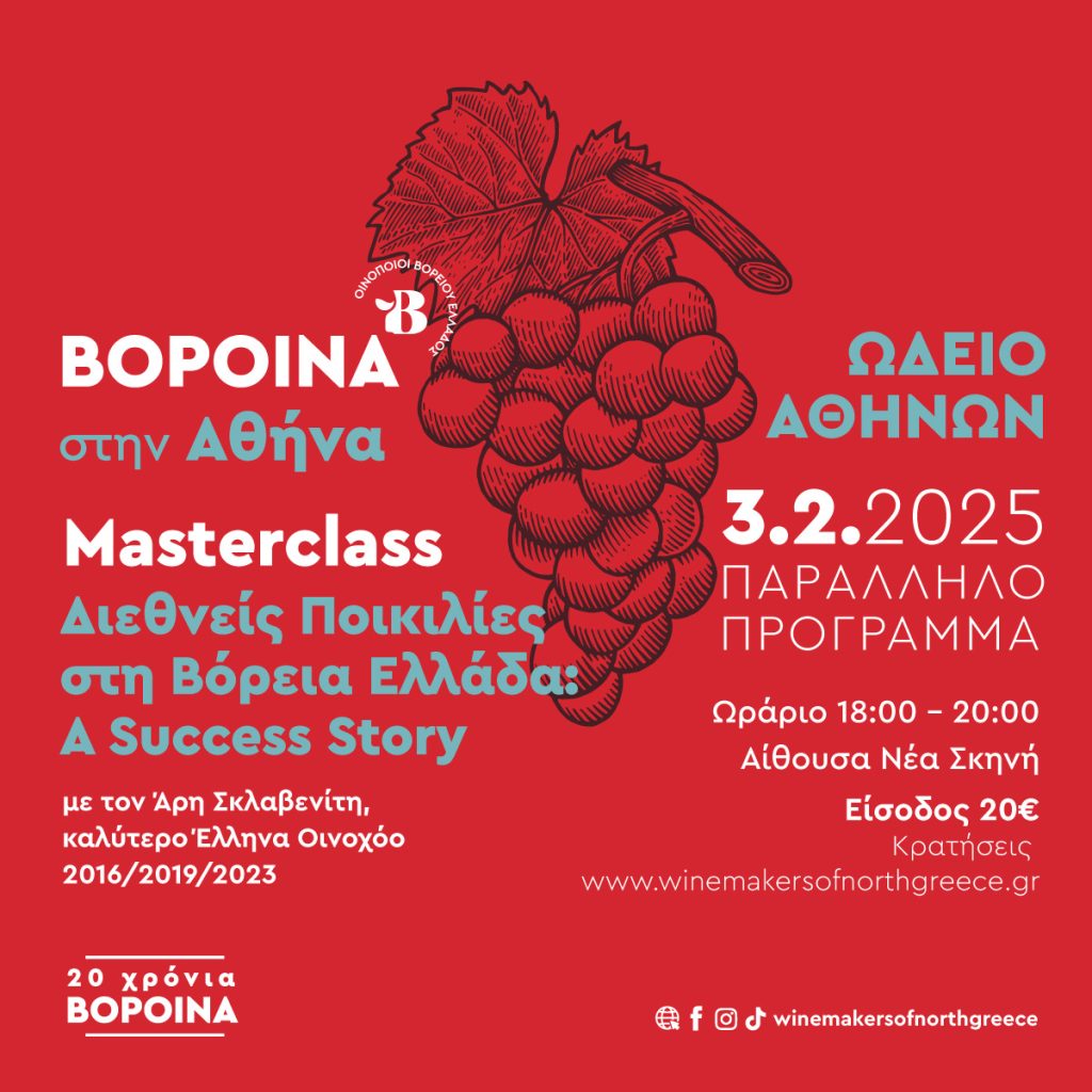 Οι “Οινοποιοί Βορείου Ελλάδος” και ο διακεκριμένος έλληνας sommelier Άρης Σκλαβενίτης, με τον τίτλο του “καλύτερου οινοχόου” τις χρονιές 2016, 2019 και 2023, προτείνουν για τη Δευτέρα 3 Φεβρουαρίου, στο παράλληλο πρόγραμμα της εκδήλωσης “ΒορΟινά στην Αθήνα”, το masterclass “Διεθνείς Ποικιλίες στη Βόρεια Ελλάδα: A Success Story”.