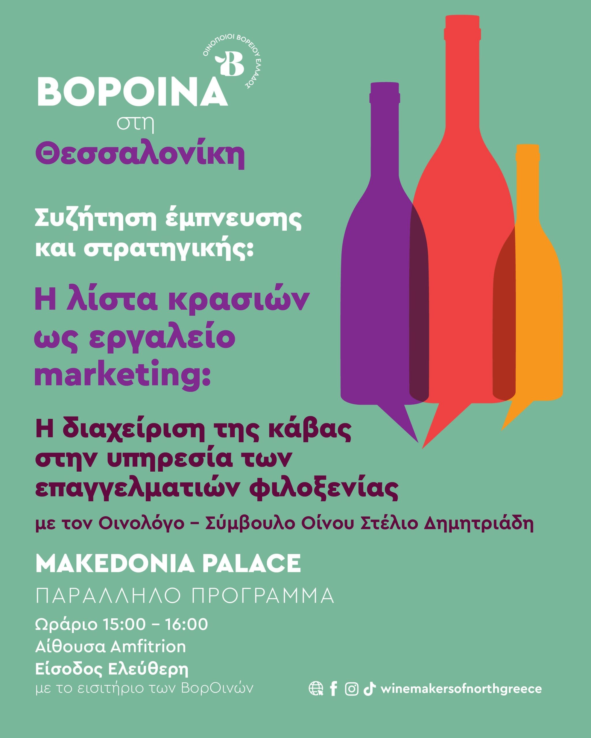 *** Περισσότερες Πληροφορίες: www.winemakersofnorthgreece.gr/event/voroina-tis-thessalonikis-2/
