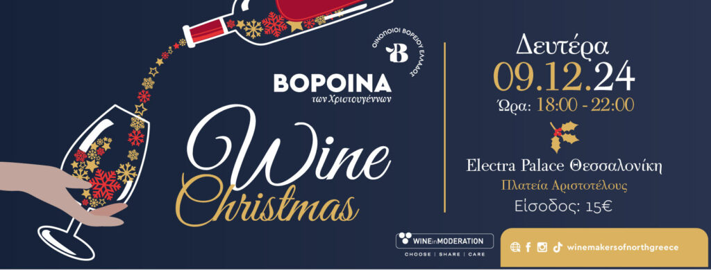 Η γιορτινή ατμόσφαιρα συναντά την τέχνη του κρασιού στα «ΒορΟινά των Χριστουγέννων», μια εκδήλωση γεμάτη με πολύχρωμα στολίδια, ζεστή μουσική, κεράσματα και τα πιο ιδιαίτερα και σπάνια κρασιά από τα κορυφαία οινοποιεία της Βόρειας Ελλάδας!